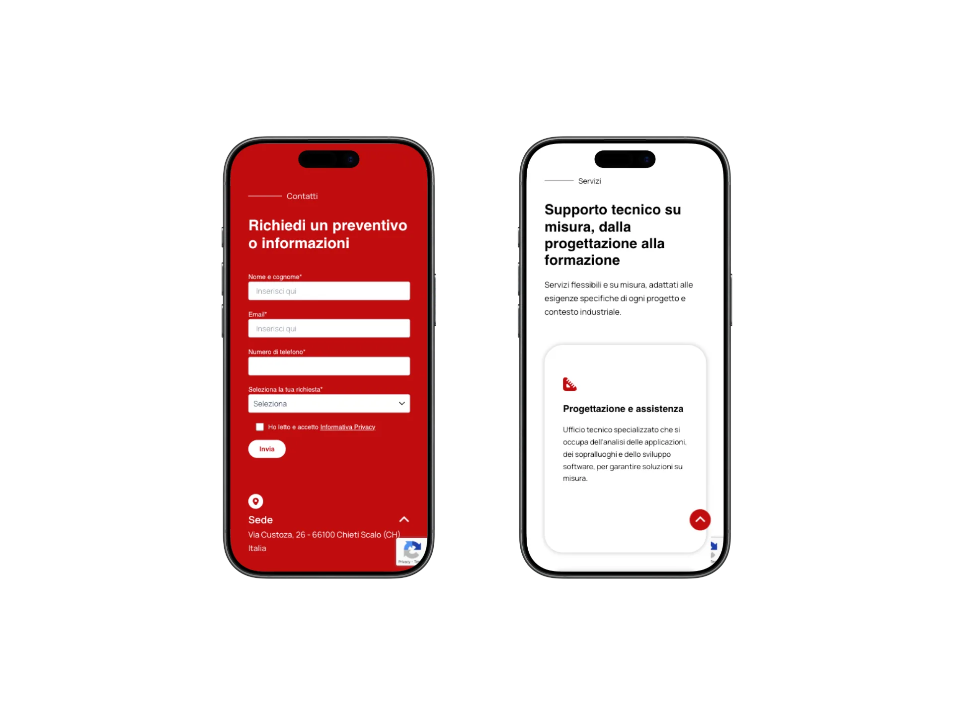 Ho definito wireframe e layout orientati alla leggibilità: design pulito, gerarchie nette, stile coerente con il settore industriale e con il posizionamento tecnologico dell’azienda.